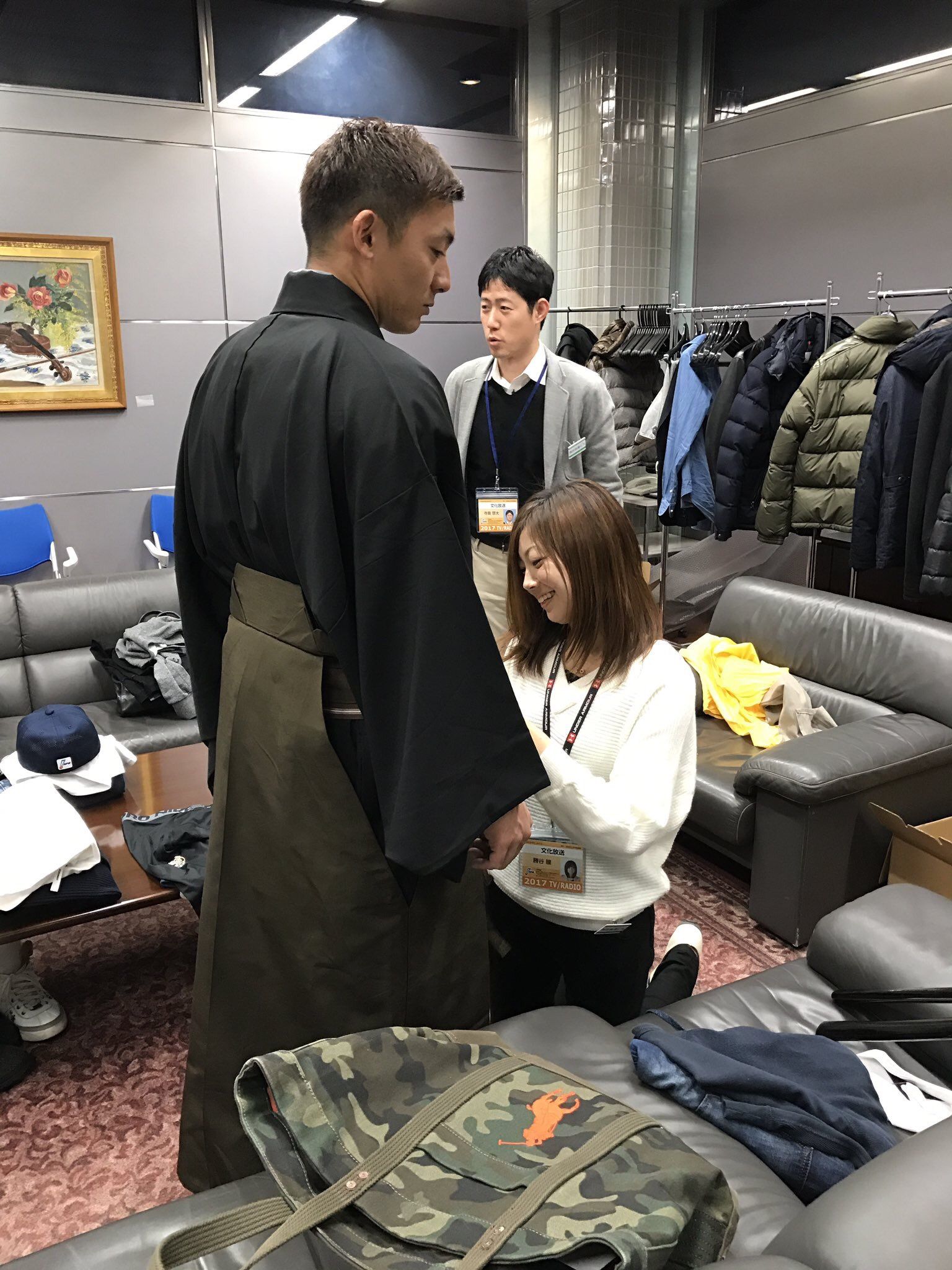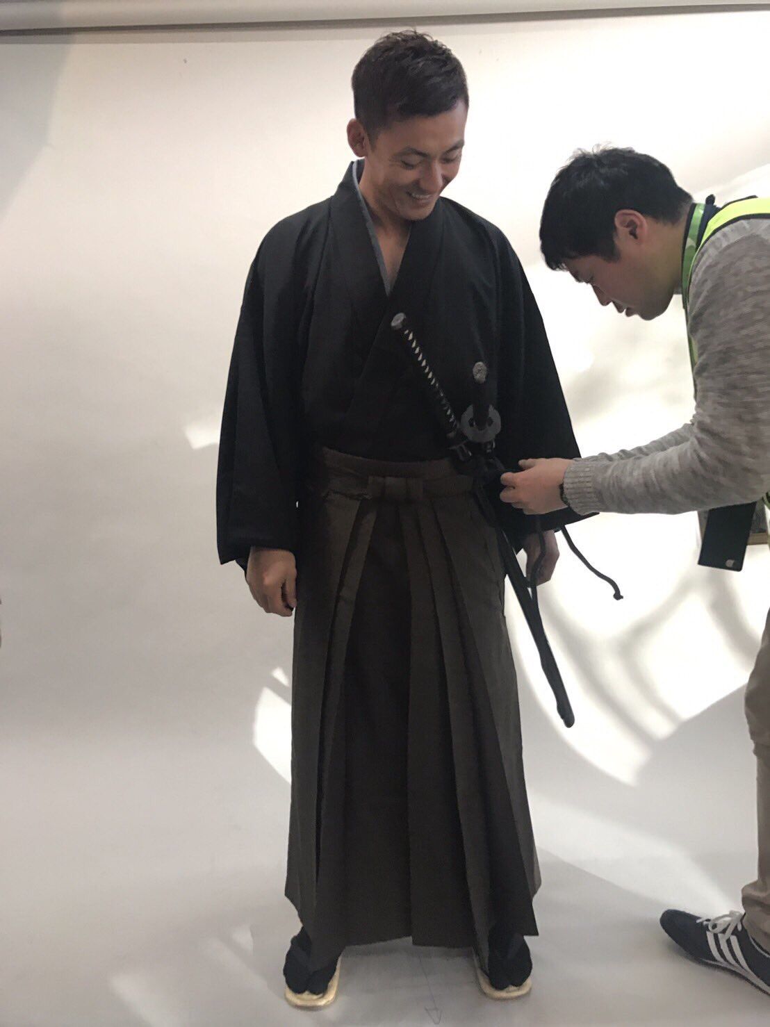 幕末の志士をイメージした仕上がりに「いいでしょ! (衣装を)着てみたらぴしっとして、結構いけるやんと思った」とニヤリ。クリアファイルは同番組にメッセージを送り、放送で紹介されるなどすれば、手に入れられる。