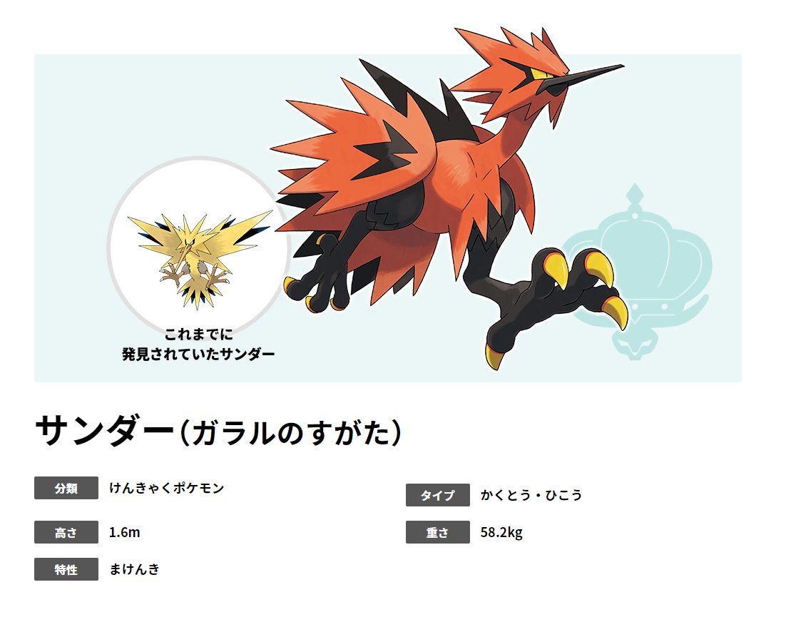 説明みた感じガラル民がカントーの伝説のポケモンと同種と勘違いして名付けちゃった別種みたいやな
