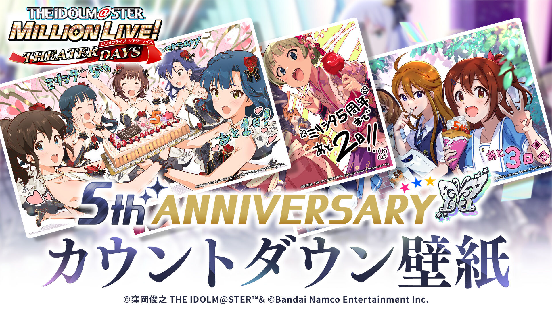 アイドルマスター ミリオンライブ! シアターデイズを、これからもよろしくお願いいたします✨#ミリシタ5周年 を祝うカウントダウン特別イラストの壁紙を配布いたします!https://t.co/470GAd4XEx pic.twitter.com/aS9jtnkcYw