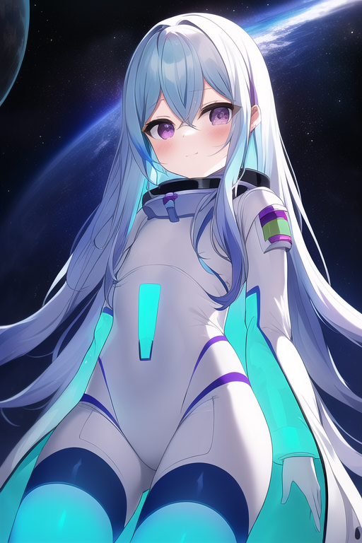 {{{{Chikama_Yashiro}}}},{{turquoise blue hair}},light purple eyes,semi-long hair,little girl,luminescence,luster hair,Spacesuit