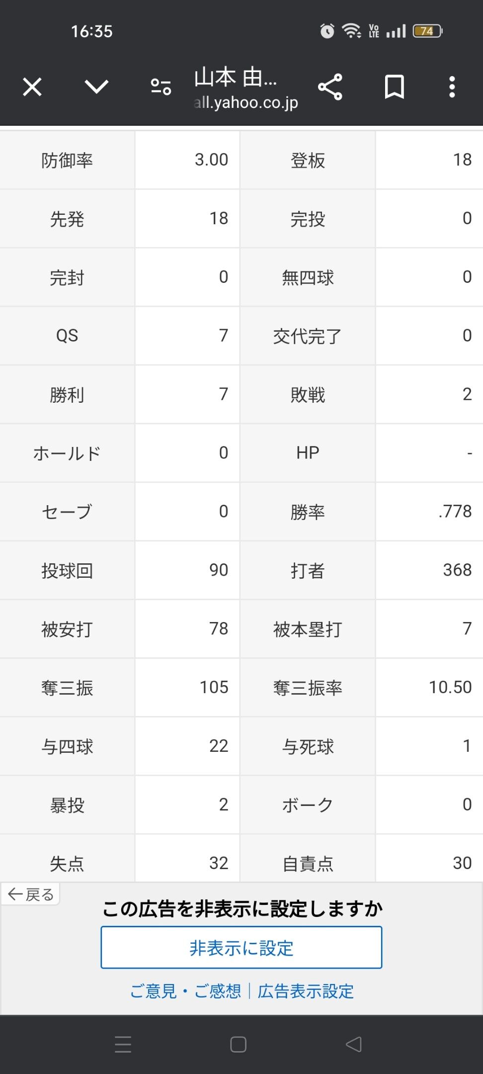 山本由伸(メジャー1年目)「7勝2敗 防御率3.00 投球回90 奪三振率10.50」←これについての感想wwww