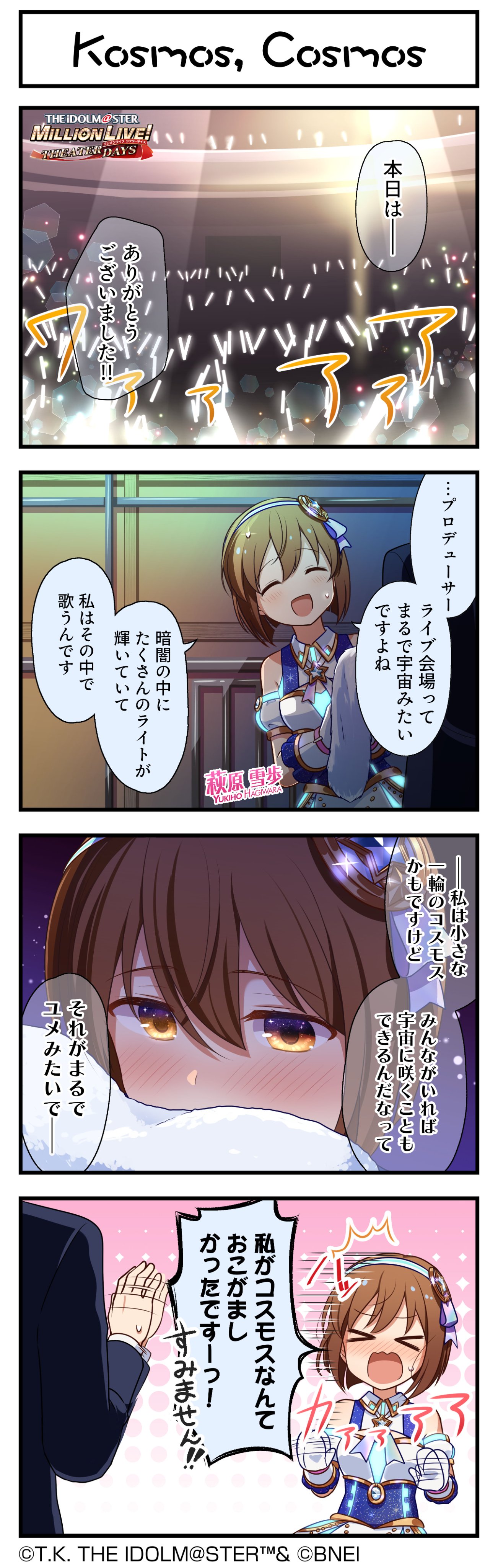 第149話をプレイすると、萩原雪歩ちゃんが歌唱する楽曲『Kosmos, Cosmos』をライブで選択できるようになりますよ♪#ミリシタ pic.twitter.com/hS7uM5E0yD