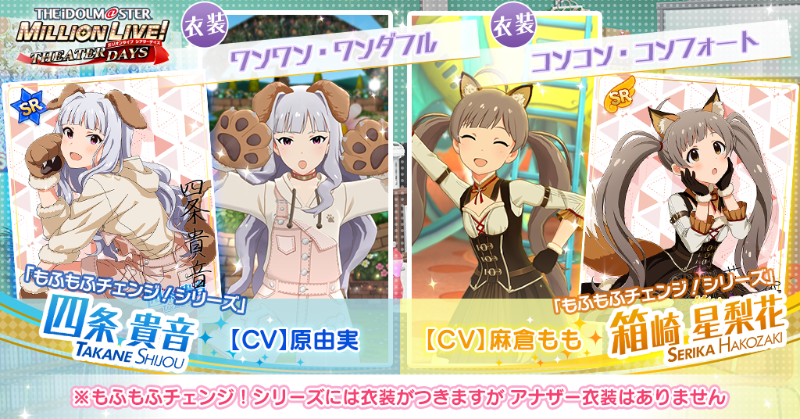 今回追加される貴音ちゃんのカードには『ワンワン・ワンダフル』、星梨花ちゃんのカードには『コンコン・コンフォート』がついてきます!