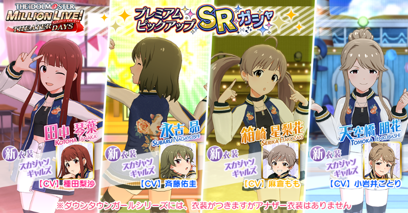 今回追加される琴葉ちゃん、昴ちゃん、星梨花ちゃん、朋花ちゃんのカードには『スカジャンギャルズ』がついてきます!
